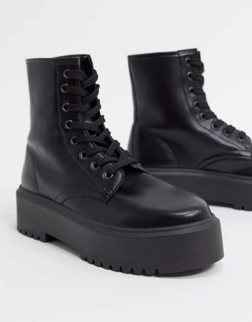 ASOS DESIGN Attitude 2 — Czarne sznurowane botki na grubej podeszwie