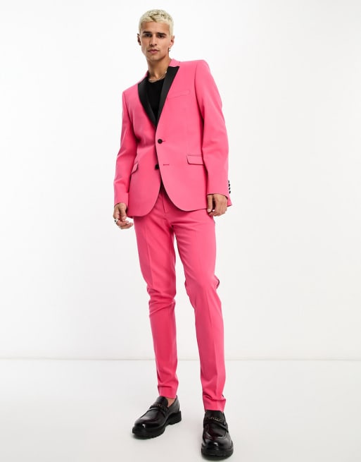 ASOS DESIGN – Bardzo dopasowany jaskraworóżowy garnitur smokingowy