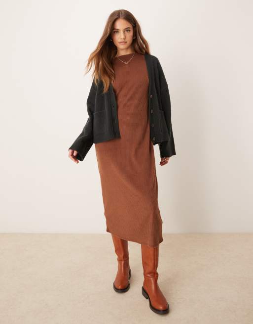 ASOS DESIGN – Bardzo miękka czekoladowa sukienka t-shirtowa midaxi z szerokimi prążkami