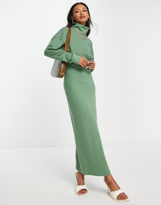 ASOS DESIGN – Bardzo miękka dwuwarstwowa sukienka dzianinowa midi 2 w 1 z golfem w kolorze khaki