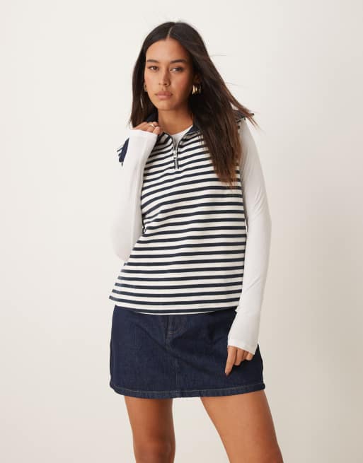 ASOS DESIGN – Bardzo miękki top bez rękawów w paski z suwakiem pod szyją, część zestawu