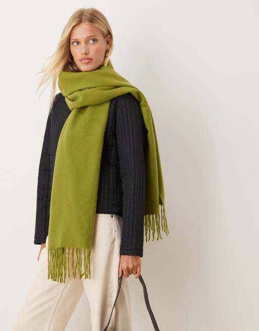 ASOS DESIGN – Bardzo miękki zielony szalik z tkaniny z frędzlami