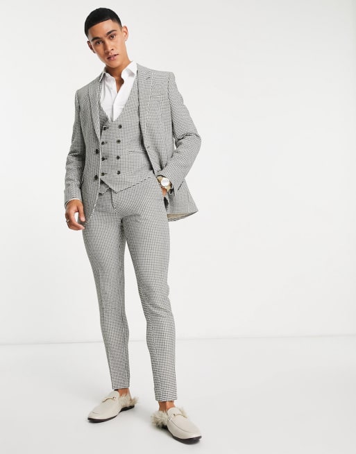 ASOS DESIGN – Bardzo obcisły garnitur w pepitkę w kolorze khaki