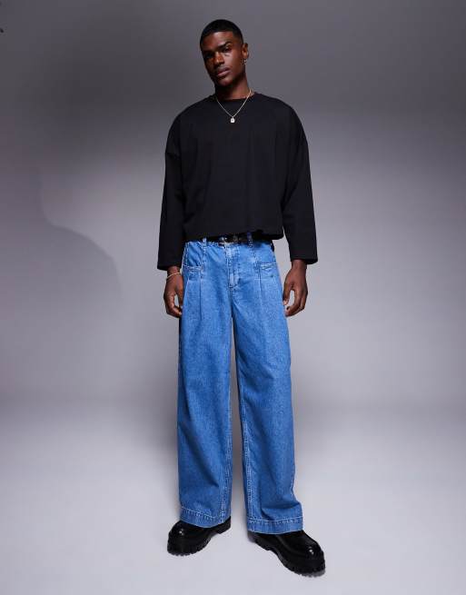 ASOS DESIGN – Bardzo szerokie jeansy z zakładkami