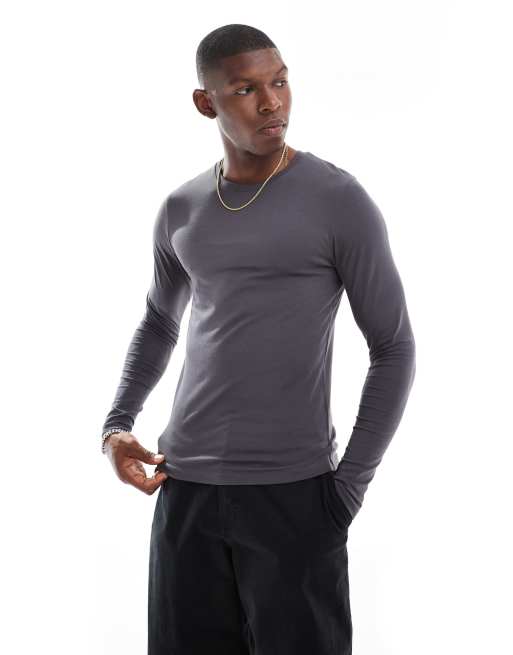 ASOS DESIGN – Basic – Grafitowy T-shirt o kroju podkreślającym sylwetkę z długimi rękawami