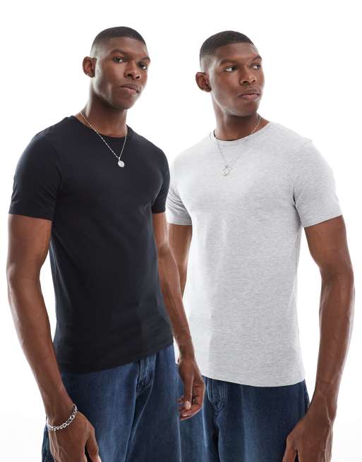 ASOS DESIGN – Basic – Zestaw 2 T-shirtów o kroju podkreślającym sylwetkę w kolorach białym i szarym melanżowym