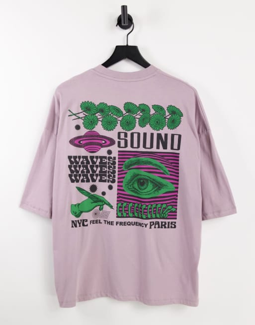 ASOS DESIGN – Bawełniany fioletowy T-shirt oversize z nadrukiem na plecach – PURPLE