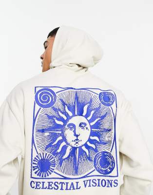 ASOS DESIGN – Beżowa bluza oversize z kapturem i nadrukiem z motywem ciał niebieskich na plecach
