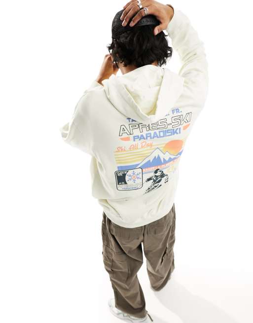 ASOS DESIGN – Beżowa bluza oversize z kapturem i narciarskim nadrukiem na plecach