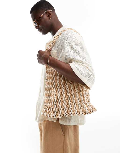 ASOS DESIGN – Beżowa, dzianinowa torebka typu tote