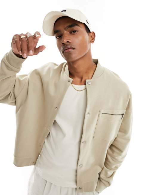 ASOS DESIGN – Beżowa elegancka kurtka bomberka z kieszenią z dżerseju