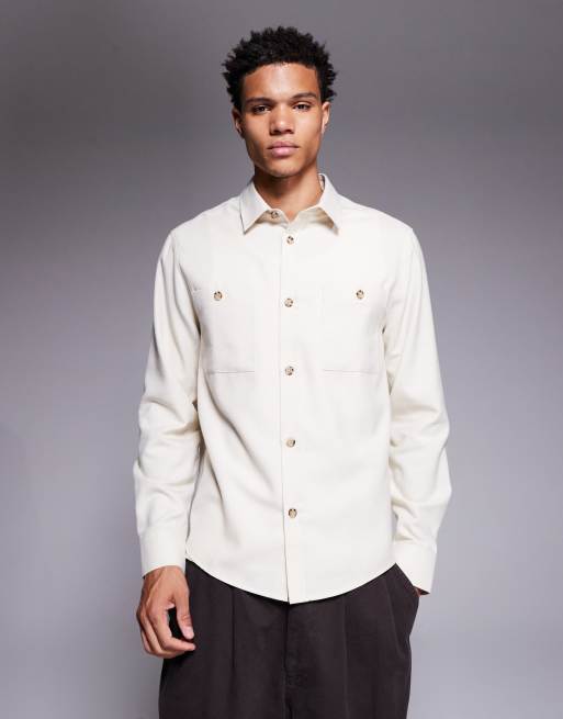ASOS DESIGN – Beżowa flanelowa koszula wierzchnia z naszytymi kieszeniami