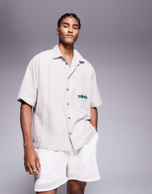 ASOS DESIGN – Beżowa koszula w kratkę oversize o pudełkowym kroju z haftowanym motywem