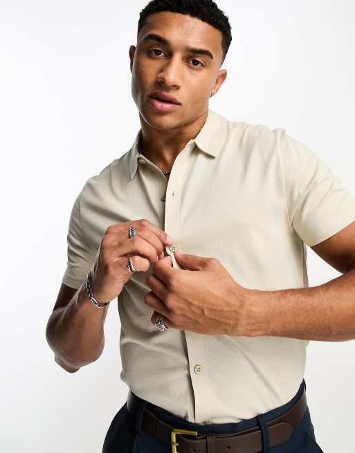 ASOS DESIGN – Beżowa koszula z dżerseju