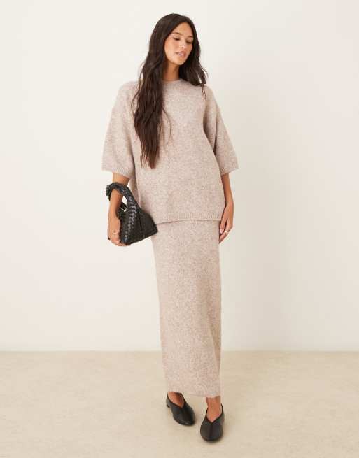 ASOS DESIGN – Beżowa spódnica midaxi z puszystej dzianiny, część zestawu