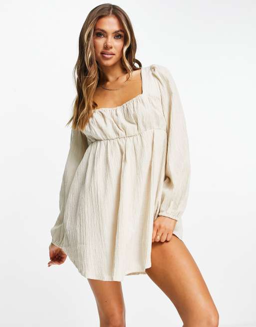 ASOS DESIGN – Beżowa sukienka plażowa milkmaid z kwadratowym dekoltem