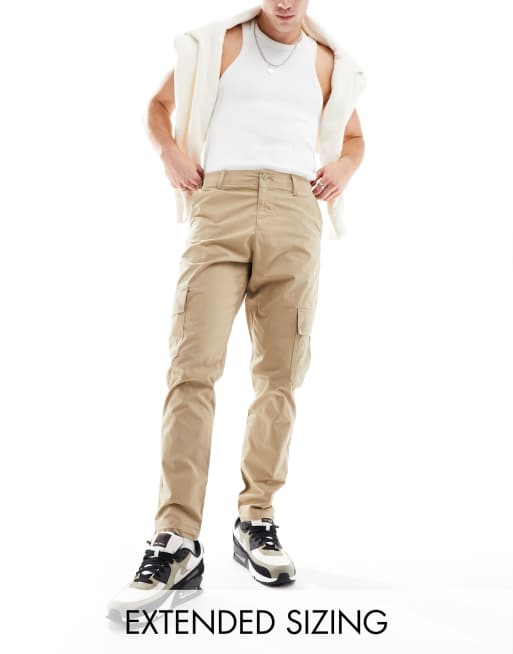 ASOS DESIGN – Beżowe bojówki ze zwężanymi nogawkami