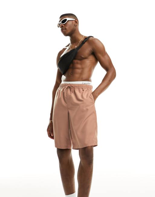 ASOS DESIGN – Beżowe dłuższe szorty kąpielowe