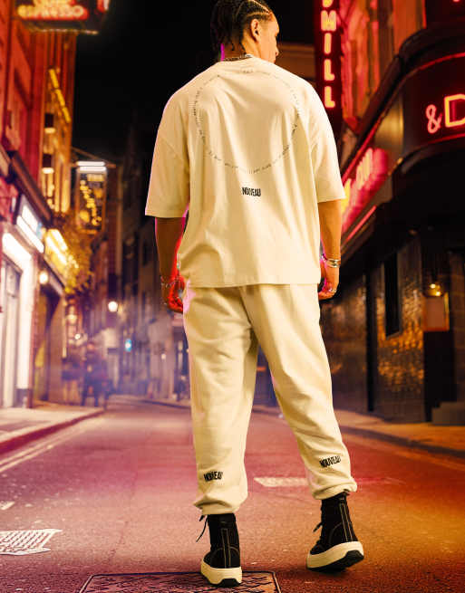 ASOS DESIGN – Beżowe joggersy oversize z logo – część zestawu