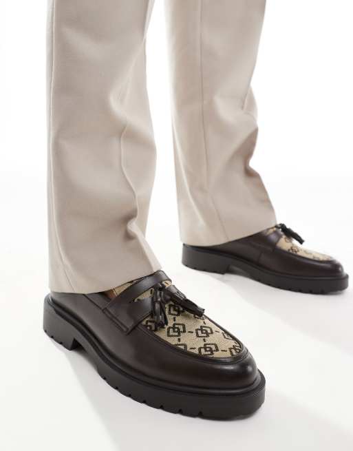 ASOS DESIGN – Beżowe loafersy ze wzorem z monogramem