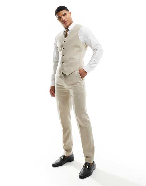 ASOS DESIGN – Beżowe teksturowane spodnie garniturowe o dopasowanym kroju z mieszanki wełny