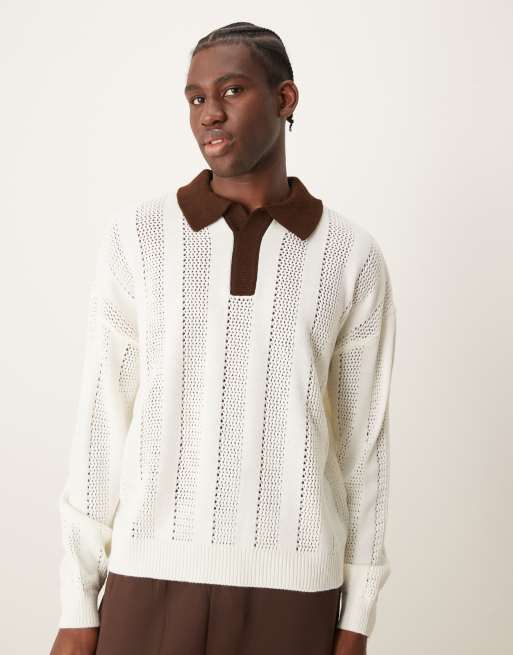 ASOS DESIGN – Beżowy dzianinowy sweter oversize z kontrastowym kołnierzem