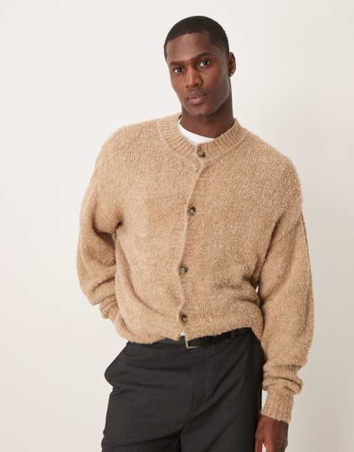 ASOS DESIGN – Beżowy fakturowany kardigan o luźnym pudełkowym kroju z okrągłym dekoltem