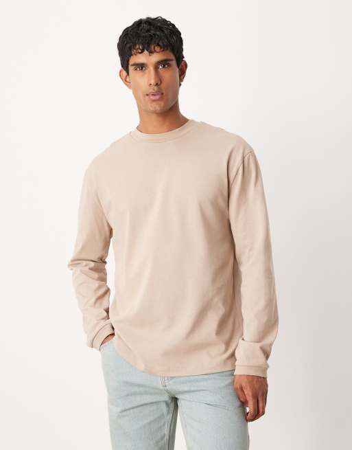 ASOS DESIGN – Beżowy gruby i luźny T-shirt z długimi rękawami i mankietami