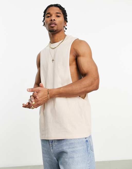 ASOS DESIGN – Beżowy luźny podkoszulek z obniżoną linią pach