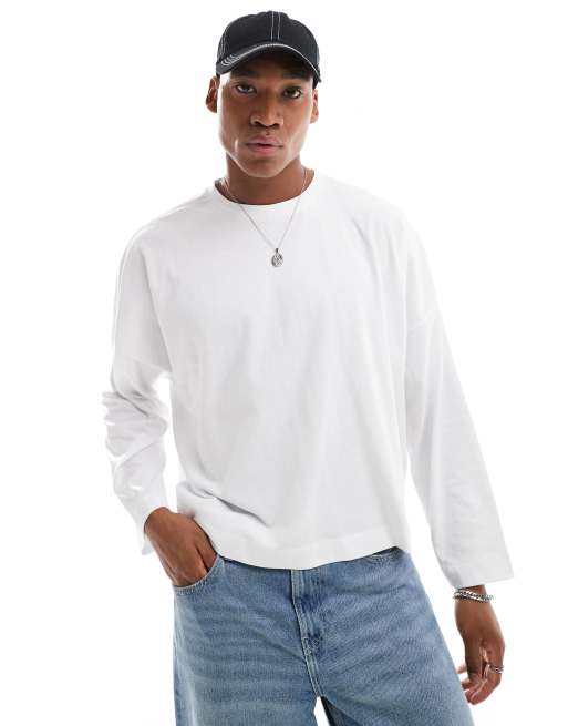 ASOS DESIGN – Beżowy pudełkowy T-shirt extreme oversize z długimi rękawami i lamówką