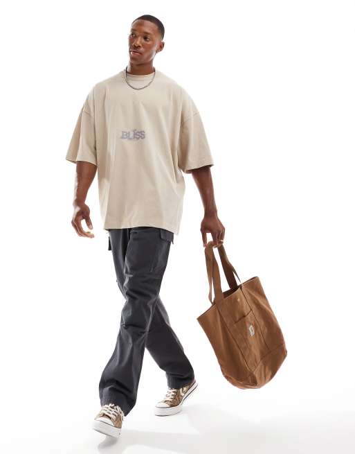 ASOS DESIGN – Beżowy sprany T-shirt extreme oversize z nadrukiem w stylu grunge z przodu