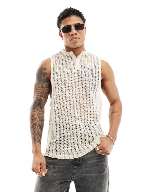 ASOS DESIGN – Beżowy szydełkowany top bez rękawów o luźnym kroju z dekoltem henley