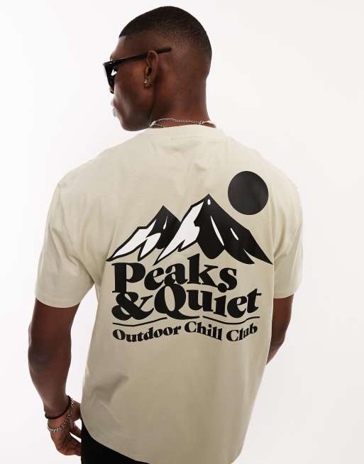 ASOS DESIGN – Beżowy T-shirt o luźnym kroju z nadrukiem gór na plecach