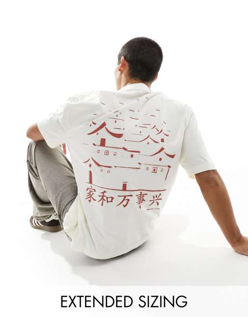 ASOS DESIGN – Beżowy T-shirt oversize z nadrukiem na plecach