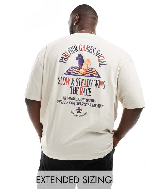 ASOS DESIGN – Beżowy T-shirt oversize z nadrukiem z motywem szachów na plecach