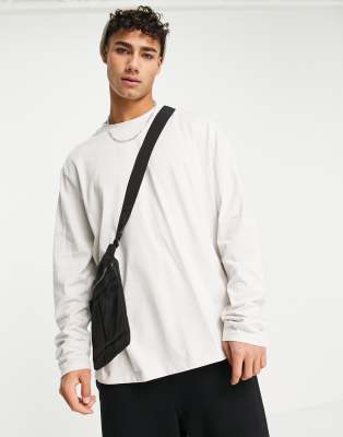 ASOS DESIGN – Beżowy t-shirt z długimi rękawami i okrągłym dekoltem