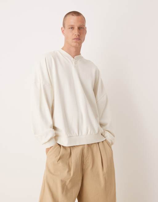 ASOS DESIGN – Biała bluza extreme oversize z kołnierzykiem zapinanym na guziki