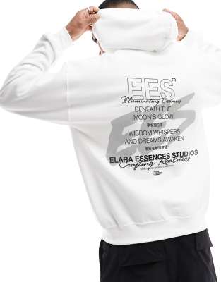 ASOS DESIGN – Biała bluza oversize z kapturem i nadrukiem na plecach