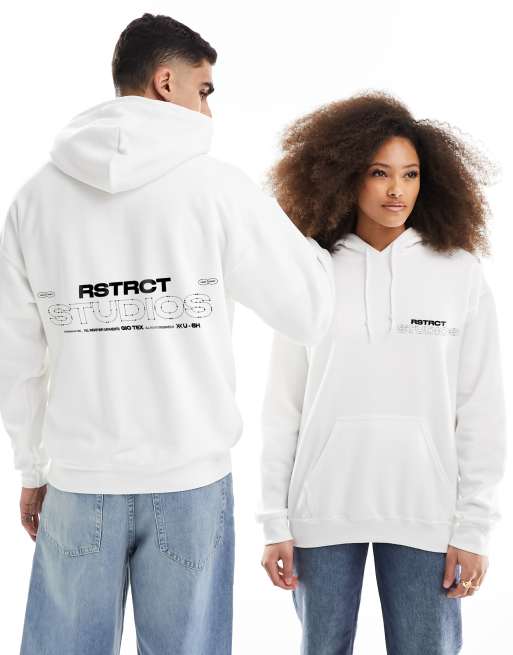 ASOS DESIGN – Biała bluza oversize z kapturem i nadrukiem