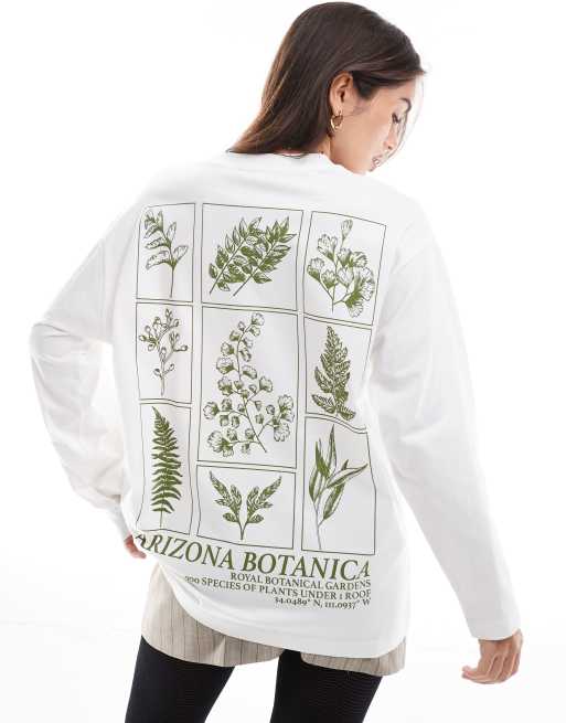 ASOS DESIGN – Biała bluza z długimi rękawami i nadrukiem z motywem roślinnym