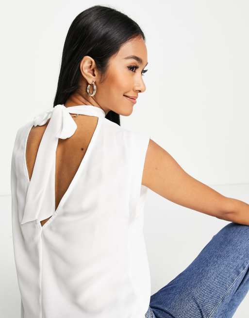 ASOS DESIGN – Biała bluzka bez rękawów z zabudowanym dekoltem i wiązaniem na plecach