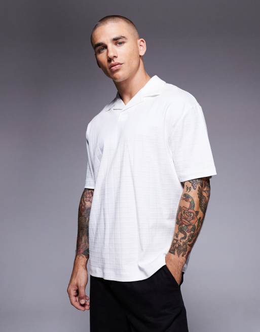 ASOS DESIGN – Biała gruba fakturowana koszulka polo o luźnym kroju
