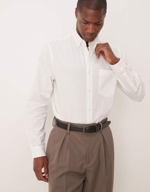 ASOS DESIGN – Biała koszula oversize z mieszanki lnu w stylu lat 90.