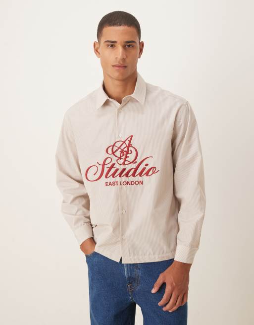 ASOS DESIGN – Biała koszula oversize z nadrukiem na piersi