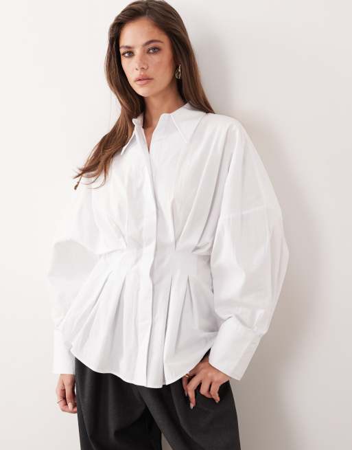 ASOS DESIGN – Biała koszula z zaszewkami w talii