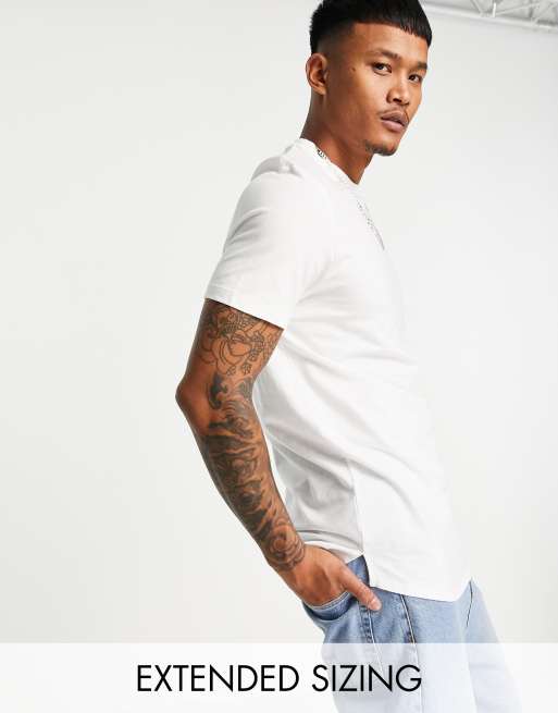 ASOS DESIGN Biała koszulka o wydłużonym kroju, z okrągłym dekoltem i rozcięciem po bokach