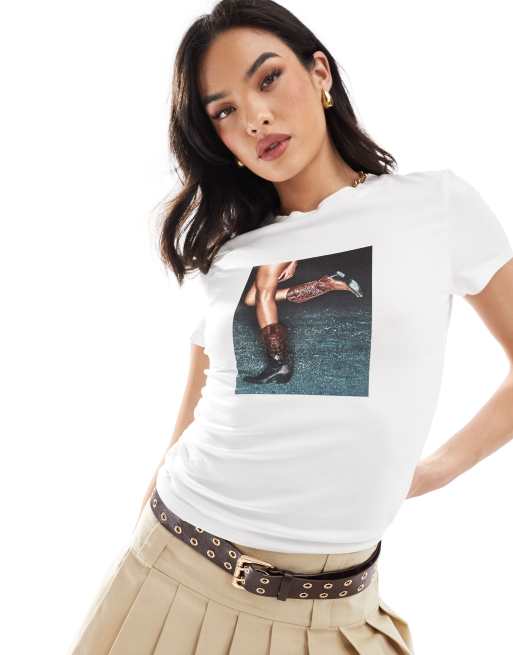 ASOS DESIGN – Biała krótka koszulka z grafiką z nogami w kowbojkach
