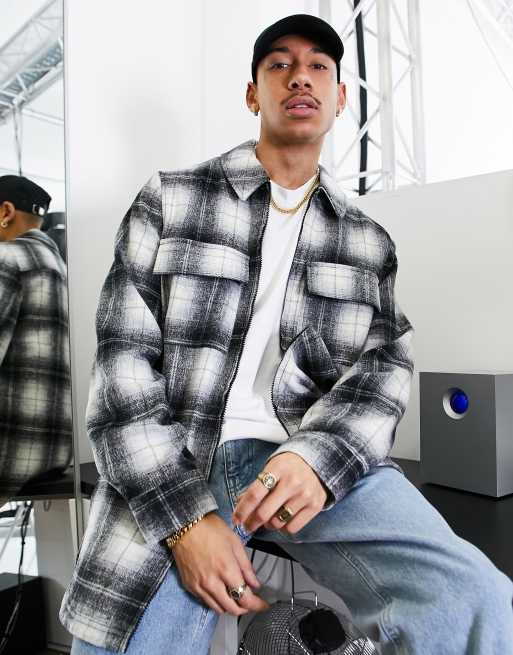 ASOS DESIGN – Biała kurtka koszulowa o wydłużonym kroju w czarną kratę