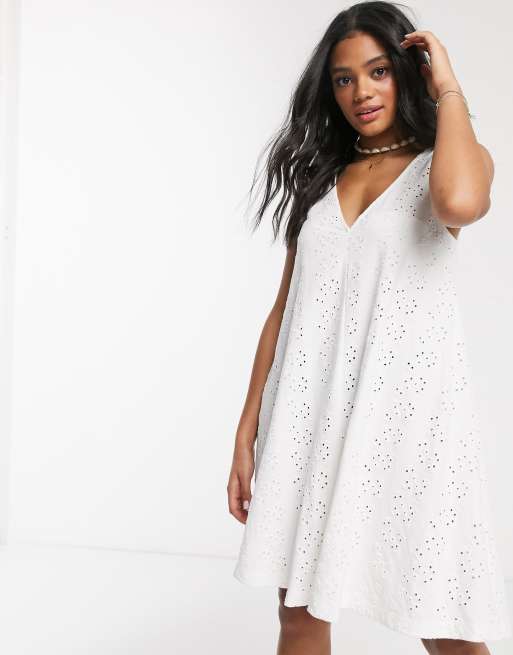 ASOS DESIGN – Biała letnia sukienka mini z koła z haftem angielskim