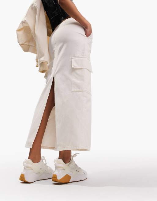 ASOS DESIGN – Biała luźna spódnica jeansowa midi z kieszeniami w stylu cargo